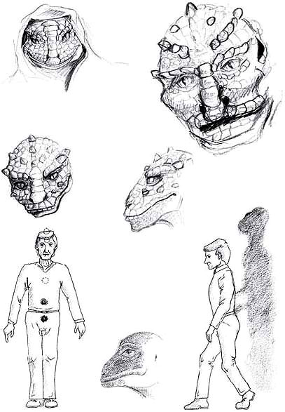 Illustrations by Clive Burrows, the Isle of Wight artist, of what people see when humans shape-shift into reptiles. This is particularly common among world leaders in politics, banking, business, the military and so on.