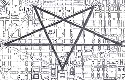 The collective word for owls is a parliament of owls, which is uncannily appropriate. The same owl symbol can be found hidden on the dollar bill if you know where to look and you have a very powerful magnifying glass. I also understand a new pedestrianisation scheme around Nelson’s Column in Trafalgar Square, London, is going to look like an owl from above. There are at least three Satanic pentagrams in the Washington street plan. By ‘Satanic’, I mean pentagrams pointing downwards or with the lines made of different lengths to distort the shape. Figure 32:
