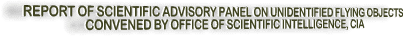 John H. Wright Enclosure ================================================================= [ S E C R E T ] REPORT OF MEETINGS OF SCIENTIFIC ADVISORY PANEL ON UNIDENTIFIED FLYING OBJECTS CONVENED BY OFFICE OF SCIENTIFIC INTELLIGENCE, CIA January 14-18, 1953 RELEASED____________________ F. C. Durant [ S E C R E T ] --------------------------------------------------------------