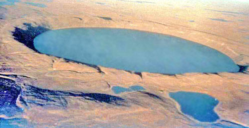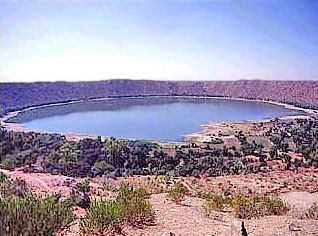 crater near Bombay. The nearly circular 2,154-metre-diameter Lonar