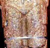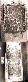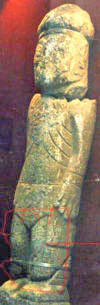 Originally it was believed that there was an inscription written only on the front legs of the monolith, further research indicated that there was also an inscription on the back of the statue and directly below the left hand of the figure. Pictures below show inscriptions on the back and side of the Pokotia Monolith.