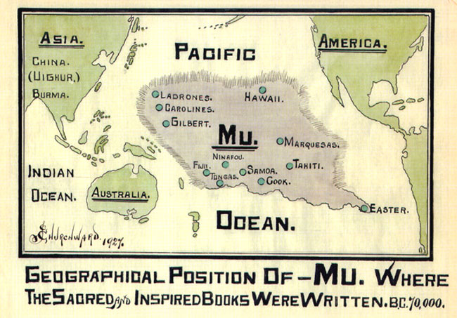 Map from 1926 "Lost Continent of Mu Motherland of Man"