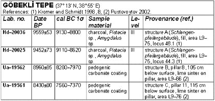 (SE Turkey, N Syria and N Iraq) 14C databases: