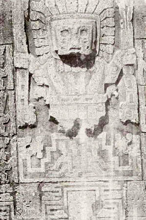 en las placas pétreas funerarias de la región de Tlaloculul, en las cuales el Dios del Fuego descansa sobre el