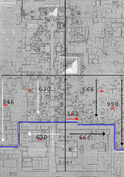 En este caso los segmentos no solo están separados por las pirámides sino por muros estratégicamente colocados. Dentro del mismo encontramos 18+……378+378+378+180+720+216 378+378+378