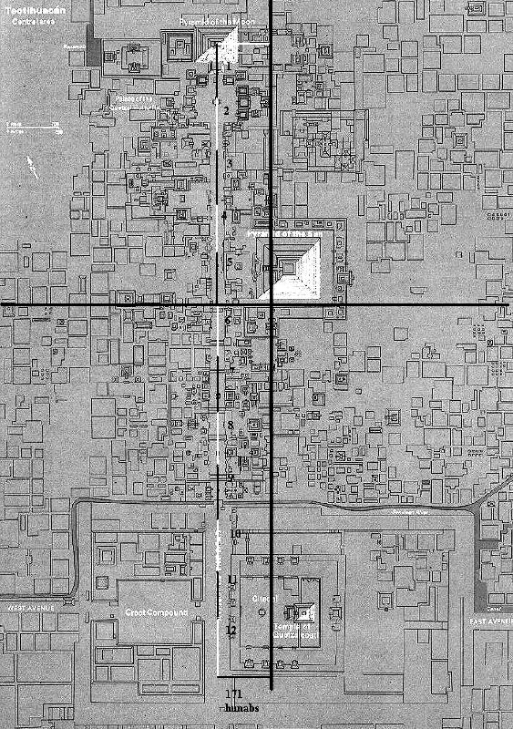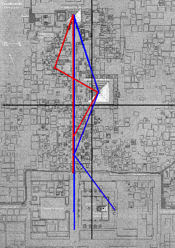 “La calzada de los muertos y las avenidas este y oeste constituyen los dos ejes de Teotihuacan” (los responsables del Instituto Nacional de Antropología e Historia en dicha ciudad). Dicha afirmación es comparable a decir que la tierra es plana.