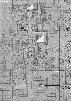 Todas las medidas están obtenidas a partir de la unidad métrica de 1,059463=1hunab que descubrió Hugh Harleston en los años 70, los mapas fueron facilitados por Jesús Alberto Ferral Novoa que ha llevado estos 30 años la defensa de dicha unidad métrica, que no es poco tiempo y el que ha ido presentando a los que ahora formamos parte de un grupo de investigación centrada en esta ciudad, José Martín Pineda Perez y otros.