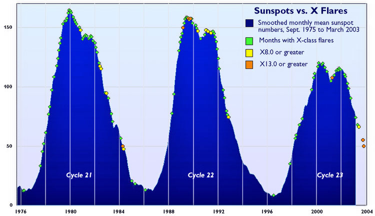 Sunspots cause solar flares and, usually, the biggest flares come from the