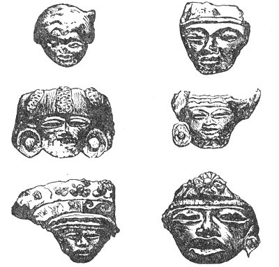 Dêsirè Charnay, now engaged in exploring those monuments, has published in the North American Review for December, 1880, photographs of a number of idols exhumed at San Juan de Teotihuacan, from which I select the following strikingly negroid faces:
