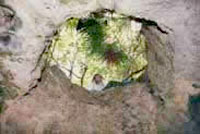 Carved petroglyphs, with skylights in their ceilings to let in