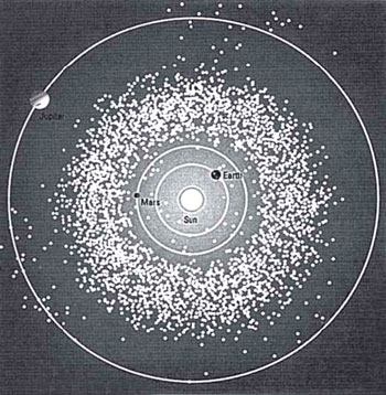 The Sumerian Tablets, from Sitchin’s translations, describe how, during the early formation of the solar system, Nibiru caused the near destruction of a planet that once existed between Jupiter and Mars. The Sumerians called it Tiamat, a planet they nicknamed The Watery Monster. They say that it was debris from Tiamat’s collision with a Nibiru moon which created the Great Band Bracelet - the asteroid belt which is found between Mars and Jupiter. What remained of Tiamat was thrown into another orbit, the texts say, and eventually it became the Earth (see Figure 2).