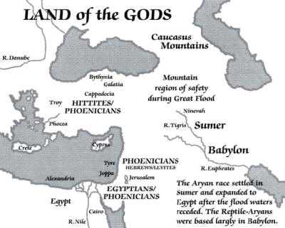 This was where the main reptile-human bloodlines emerged from and the original text of the Book of Enoch was the much older Book of Noah, the reptilian crossbreed. The Aryan race as it expanded into new territory was known under various names, the most significant of which were the Hittites and Phoenicians. I think there were definitely other Aryan settlements outside this region, possibly Britain among them, and certainly the reptilians were operating in other parts of the world, like the Americas. But this mountainous region around the Caucasus and down to the plains of Sumer and Egypt is a key to the true history of humankind over the last seven thousand years.