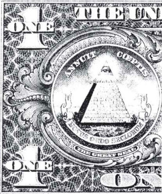 Figure 28: The All Seeing Eye on the dollar bill. The Pyramid and All Seeing Eye, the ancient Brotherhood symbol, on the dollar bill and the reverse of the Great Seal of the United States.