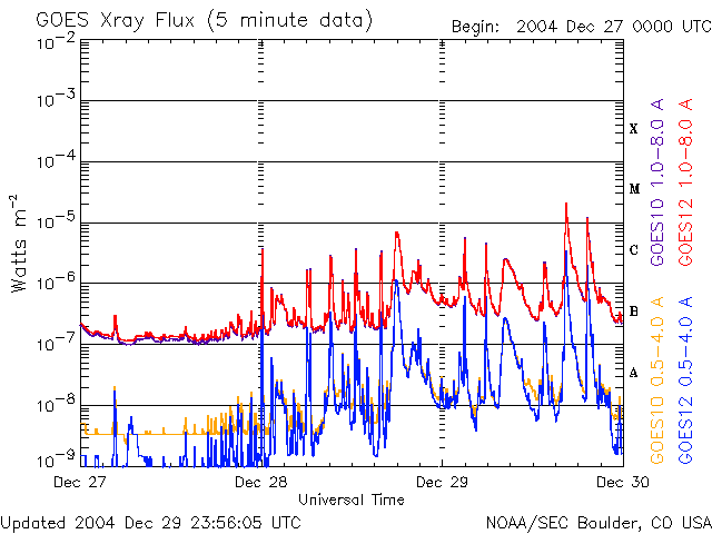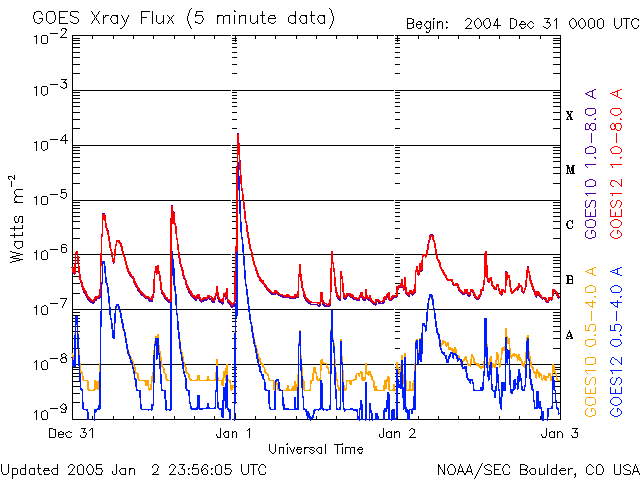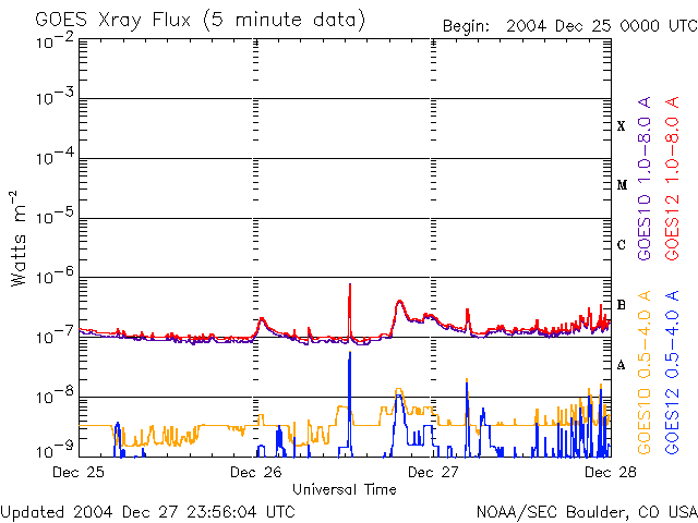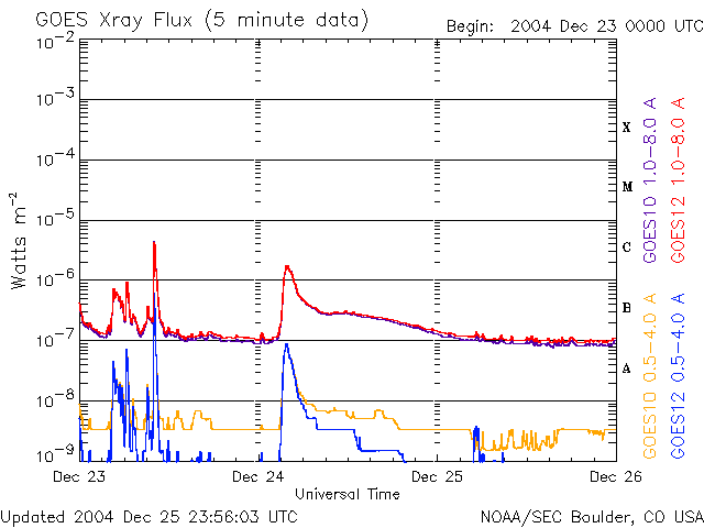 On December 24th there was a noticeable spike, a "C" flare and then quickly dropped off to low levels.