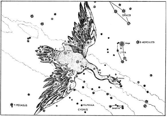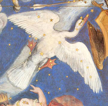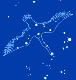 entrance to the sky-world, Cygnus as the cosmic bird, positioned at