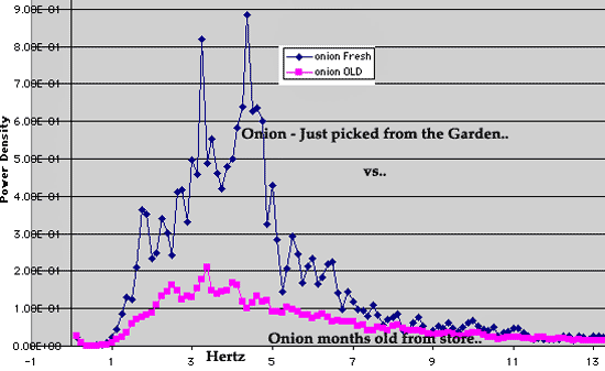 measure the difference in life force between an onion JUST picked