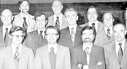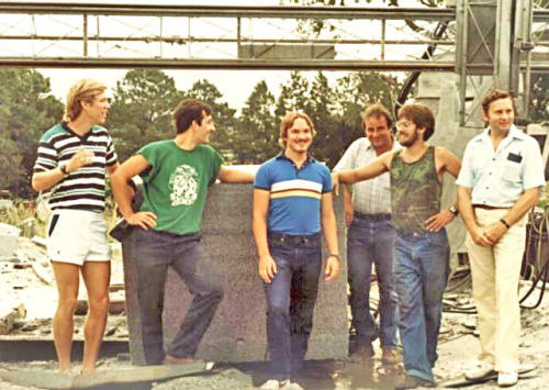 Figure 3. Original NSF panel: Dr. Summers (UMR) Mr. Tessner (Ga Tech) Mr. Stengel (Northwest Granite) Mr. Ralph (Barre, VT); 2nd row Mr. Tyler (Century Granite) Dr. Hakala (NSF); Mr. McGarity (Harmony Blue) Mr. Harper (Apex Granite) 3rd row Mr. Wright (Ga Tech) Mr. Coggins (Coggins Granite)