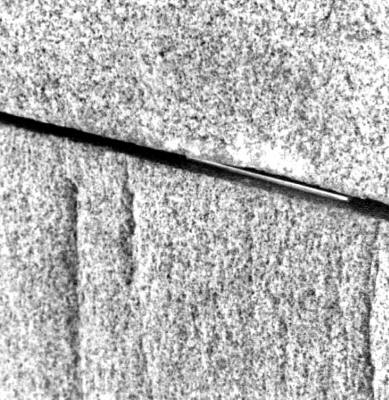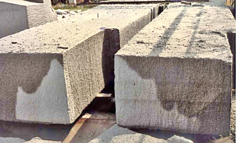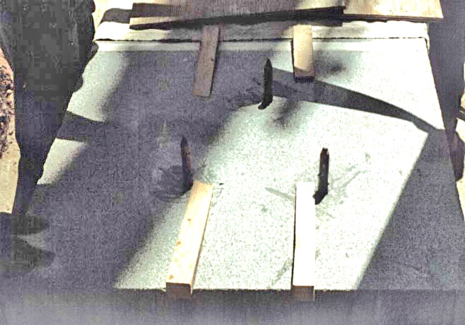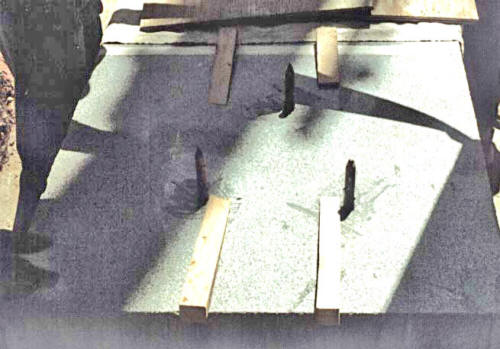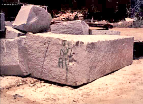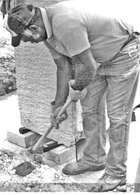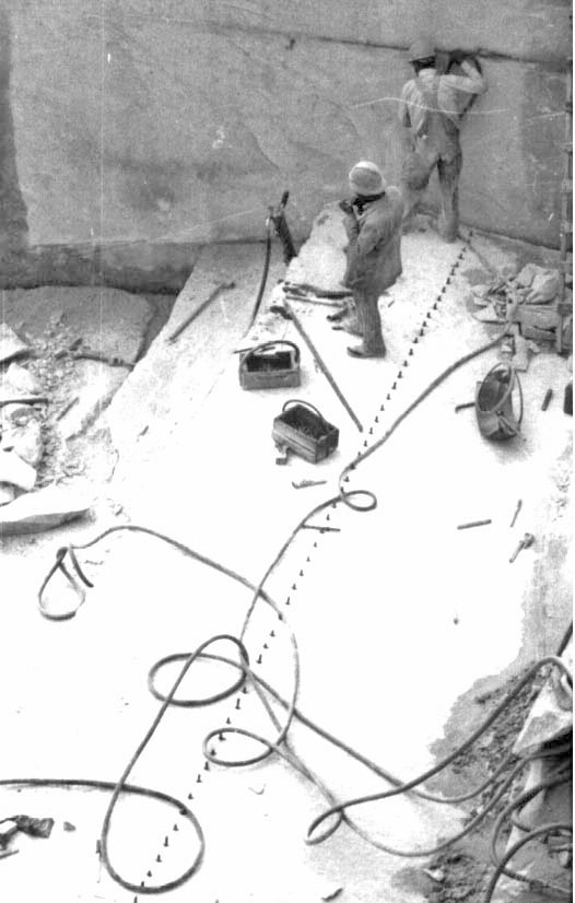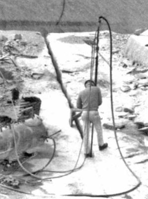 This creates a very narrow cut (which increases the amount of quality granite produced) and leaves a very smooth surface which can be used as one of the edges of the stone, whereas with the earlier methods the edge had later to be removed. (The latest method will be discussed later). Those earlier methods left the rock which we received in Rolla in a ragged shape.