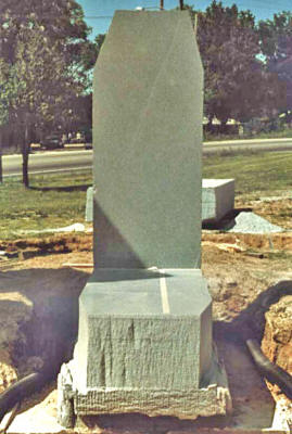 blocks for the North trilithon legs. The base of the analemma stone was left partially uncut so that future generations could see how it was done (although it is buried under the current ground level). The lower analemma stone sits on a concrete pad and has two slots in its base, so that it can be re-leveled if necessary.