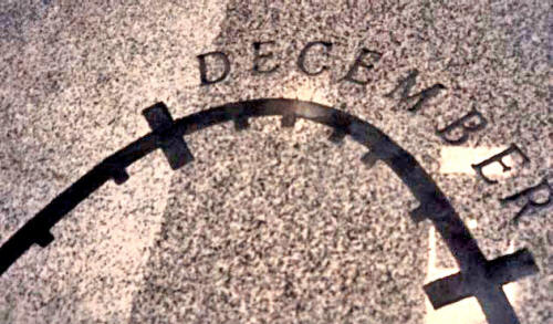 image as it crosses the analemma curve at midsummer. By marking the position of the sun on the line, which is notched for every fifth day, it is possible to read what day of the year it is.