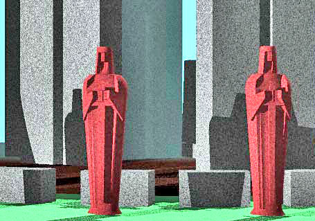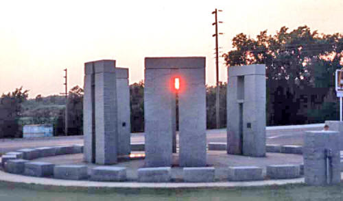 Guidestone Polar window. In addition there have been a number of "modern" versions of Stonehenge. For example in Whitby, Ontario Canada, a sculptor Bill Lishman, has built a version of the megalith using old partially crushed cars to generate the equivalent of the stones.