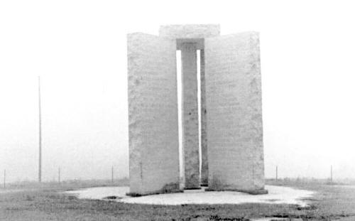 stones at the Maryhill Henge. More recently the Elberton Granite Association was commissioned to build what are known as the Guidestones. These are an assembly of rocks, which stand a total of 19 ft 3 inches high, which carry the same universal message of peace, in eight of the most common languages of man.