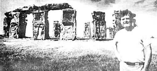 In order to provide a surface closer to that of the original, the frames for the concrete pillars were lined with crumpled tin. He built his memorial out of concrete in the form of a full scale version of the original Stonehenge.