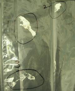 with fibers in rubber band and Labeled INC-7-19-06 PR FRESS. The