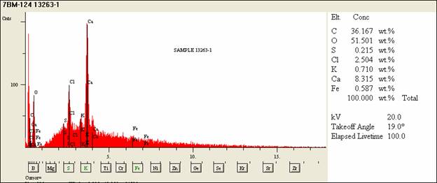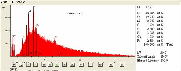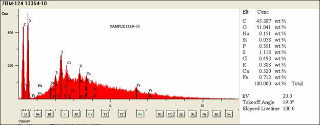 5) A FTIR spectrum of one spot on the fiber indicated the