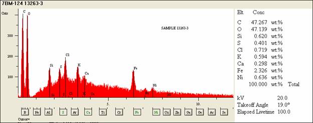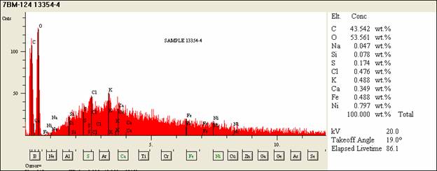 Spectra was collected from the shaft (spectrum 03120004), the edge