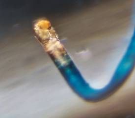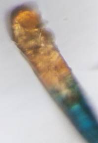 2. Fiber- body adjacent to "head" showed polyester-like