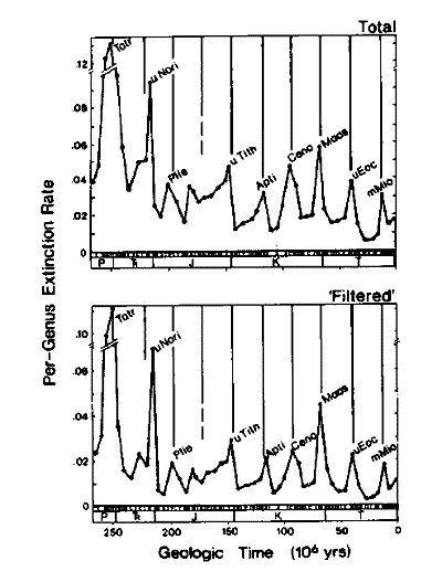 Studies of the fossil record by Dave Raup and Jack Sepkoski shows