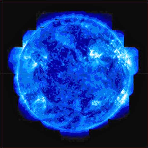 picture is a mosaic of ultraviolet images from the orbiting TRACE