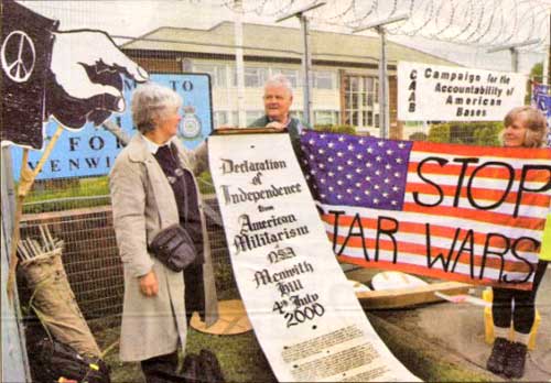 America" protest against the bases involvement in the war on Iraq.