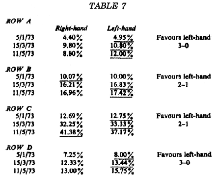 they maintained their advantage. In row B the advantage changed from