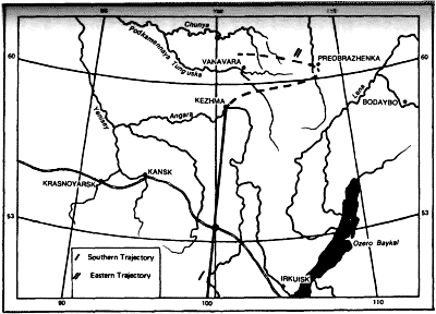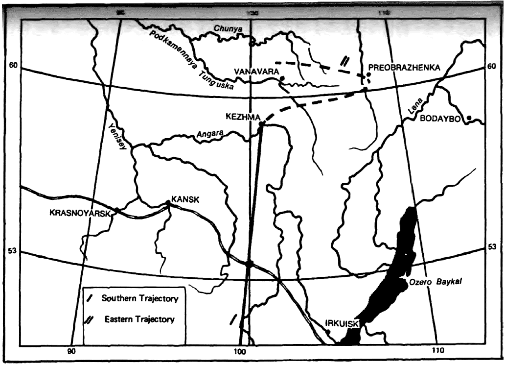 Diagram showing relationship of Tunguska explosion to polar