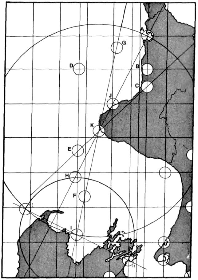 101° 57’ East. C = Position of major aerial on longitude 90° / 65° 8.88’.