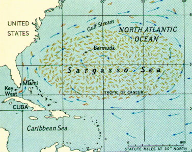 surrounding currents eventually ends up in the Sargasso Sea amidst its