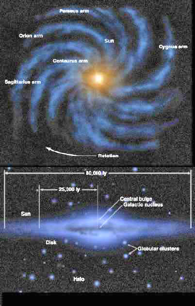 looking down onto the Galactic plane from above. A