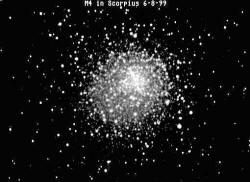 M4, (click on image right) located 5,600 light-years away in the summer constellation Scorpius. Globular clusters are deficient in heavier elements,