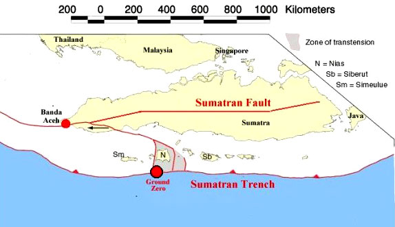 the Sumatran Trench and Sumatran Fault shown in the picture above