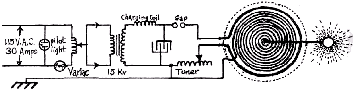 The following shows the basic Tesla coil layout: