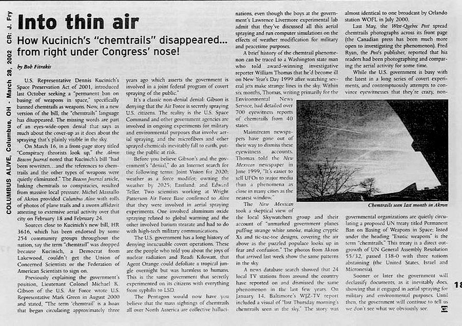 FINALLY... a serious article about chemtrails in a major city newspaper.