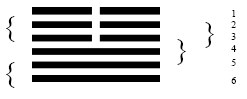 Saber si este orden lógico corresponde sin ninguna clase de dudas a la secuencia histórica, es una cuestión que dejo planteada. Hay muchas indicaciones de que los hexagramas fueron las imágenes primitivas, de las cuales se abstrajeron luego los trigramas, y que los signos de las líneas dobles se derivan de un análisis aún posterior. En favor de esto, en primer lugar, está el hecho de que los números dos y seis, sobre los cuales se basan los hexagramas, tienen una remota antigüedad en el sistema numérico como números destacados.