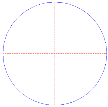 Draw a circle. Draw the horizontal and vertical centerlines.