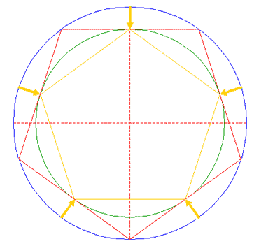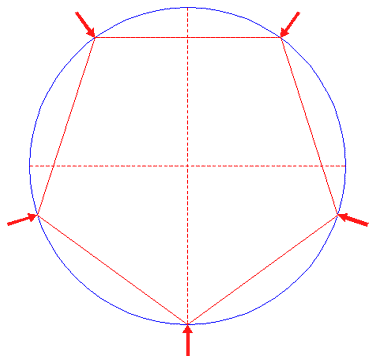 Construct the inscribed pentagon of circle 1, pointing up. |