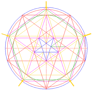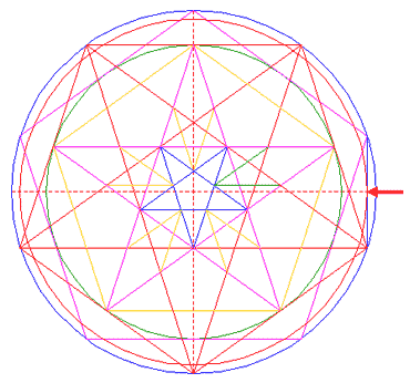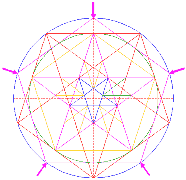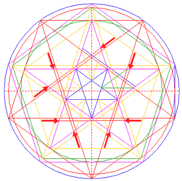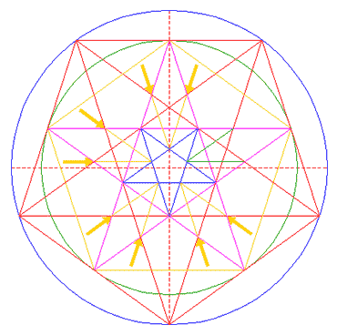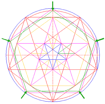 Repeat steps 15 and 16 for the other four corresponding intersections of pentagrams 5 and 14.