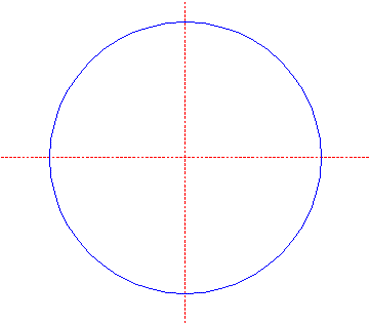 Draw a circle. Draw and extend the horizontal and vertical centerlines.