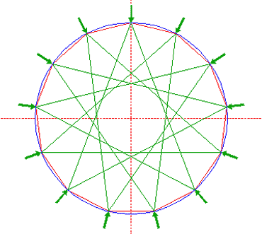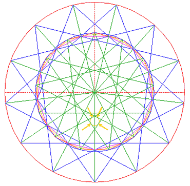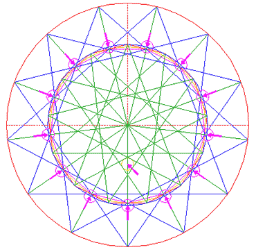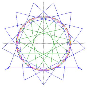 Construct a 13-pointed star, by connecting all angular points of polygon 2, five apart. |