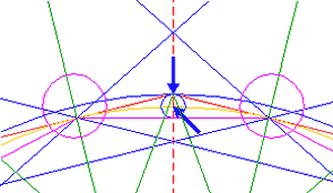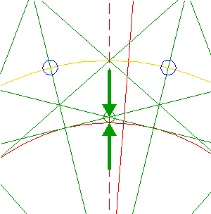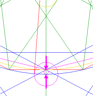 Construct a small circle the centerline of which connects the lower intersections of circles 1 and 4 with the vertical centerline.